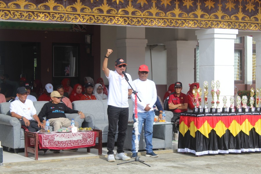 Benai — Kepala Dinas Pendidikan Kepemudaan dan Olahraga (Disdikpora) H. Herizon, S.Pd.SD, MM secara resmi melepas peserta pawai karnaval dalam rangka menyemarakkan HUT Kemerdekaan RI yang ke-80 di Kecamatan Benai, Kabupaten Kuantan Singingi, Sabtu pagi (16/08/2025).