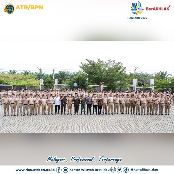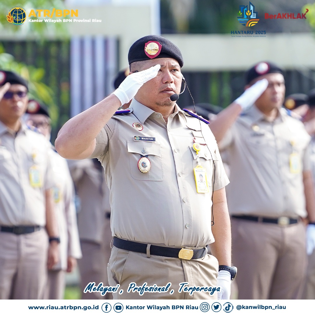 Rcn.com (Pekanbaru) - Dalam rangka memperingati Hari Undang-Undang Pokok Agraria Ke-65, Kantor Wilayah BPN Provinsi Riau melaksanakan Upacara Peringatan Hari Agraria dan Tata Ruang (HANTARU) Tahun 2025, pada Rabu (24/09/2025).Adapun peringatan HANTARU 2025 ini mengusung tema "Tanah Terjaga, Ruang Tertata, Wujudkan Astacita".