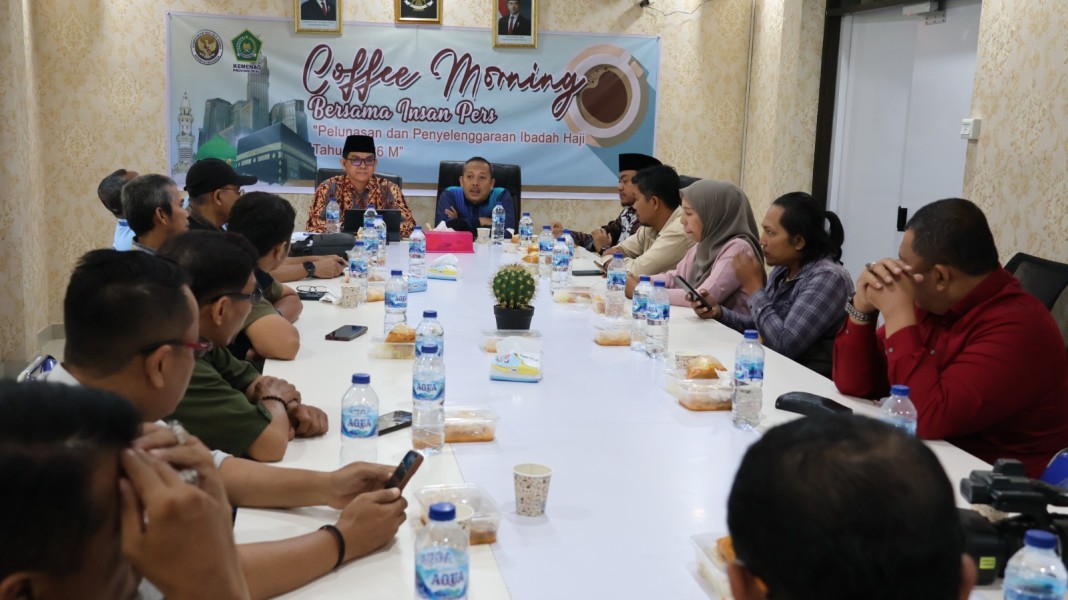 Rcn.com (Pekanbaru) - Lewat coffe morning bersama awak media, PLT Kepala Kantor Kementrian Haji dan Umroh (Kemenhaj) Propinsi Riau Defizon, memaparkan prihal Pelunasan Biaya Penyelenggaraan Haji tahun 2026.