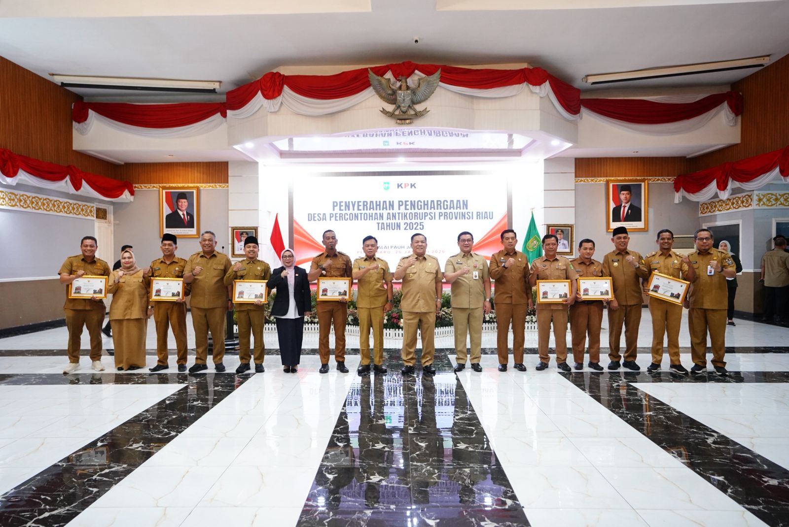"Hari ini saya menerima piagam, yang diserahkan langsung oleh PLT Gubernur Riau SF Hariyanto, sekaligus bersama rewodnya berupa umroh gratis bagi 7 Kepala Desa yang telah mendapat penilaian objektif dari Pemprop Riau bersama KPK RI sebagai Desa Perluasan percontohan anti korupsi", terang Soleman.