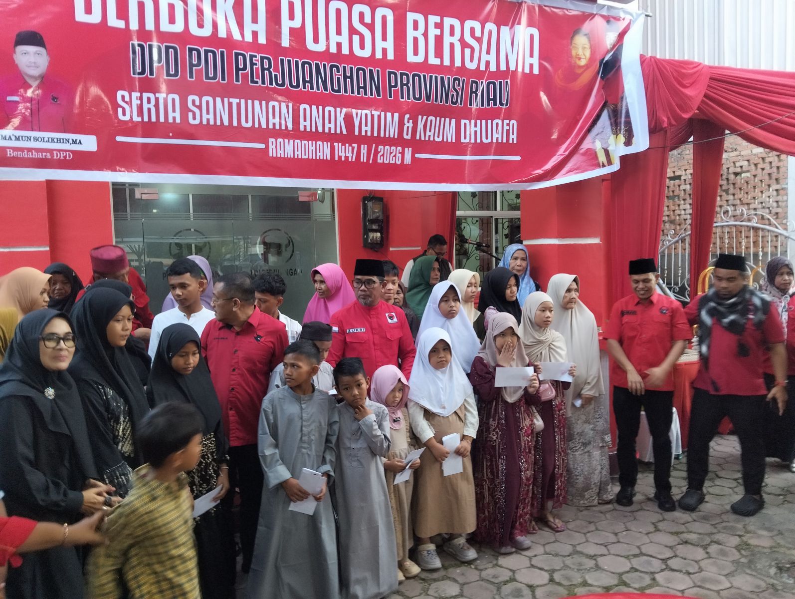 Buka puasa bersama, diawali dengan pembagian takjil di depan Kantor PDIP yang langsung dipimpin oleh Ketua DPD PDIP Propinsi Riau Zuhri bersama jajaran pengurus lainnya.Setelah pembagian takjil acara dilanjutkan dengan santunan kepada anak anak yatim, piatu dan kaum dhuafa, baik yang berada disekitar Kantor PDIP maupun dari tempat lain.
