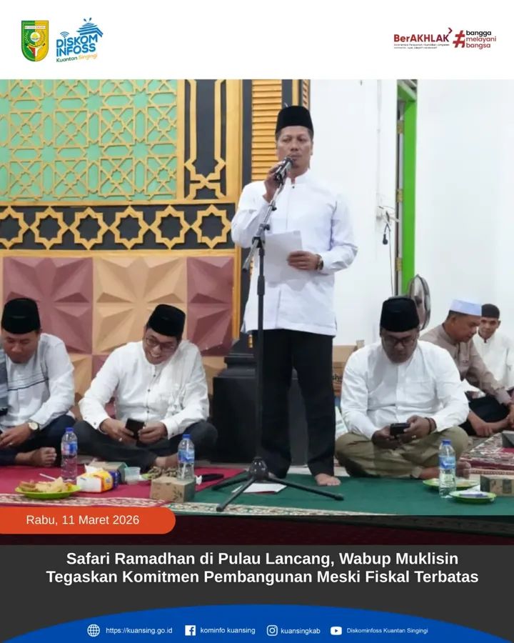 Hal tersebut disampaikan Wakil Bupati Kuantan Singingi, H. Muklisin, saat menghadiri Safari Ramadhan di Masjid Taqwa, Desa Pulau Lancang, Kecamatan Benai, Rabu (11/3/2026).